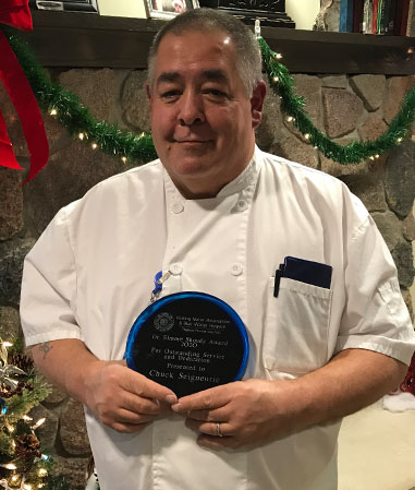 Chuck Seigneurie was given the 2020 Dr. Elmore Shoudy Award during a special presentation at the Blue Water Hospice Home. The award is named after Blue Water Hospice founder, Dr. Elmore Shoudy, and is given to an employee of the Hospice division who provides extraordinary care to patients and families dealing with a terminal illness.