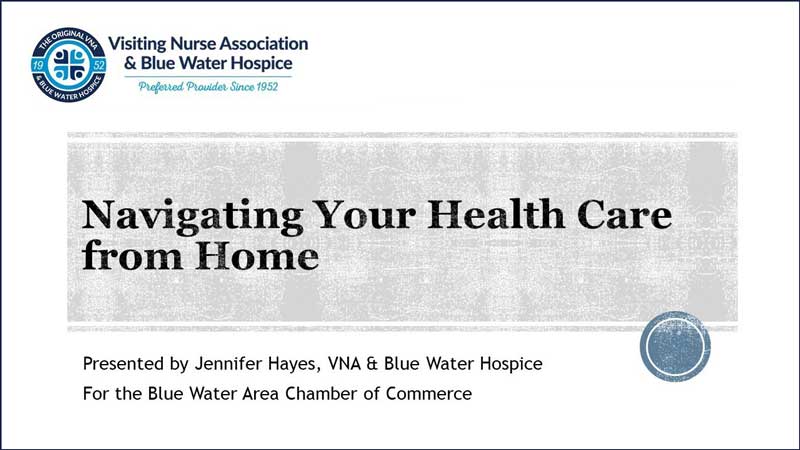 VNA & Blue Water Hospice Community Representative Jennifer Hayes was the featured speaker at a Blue Water Chamber Breakfast Brief.